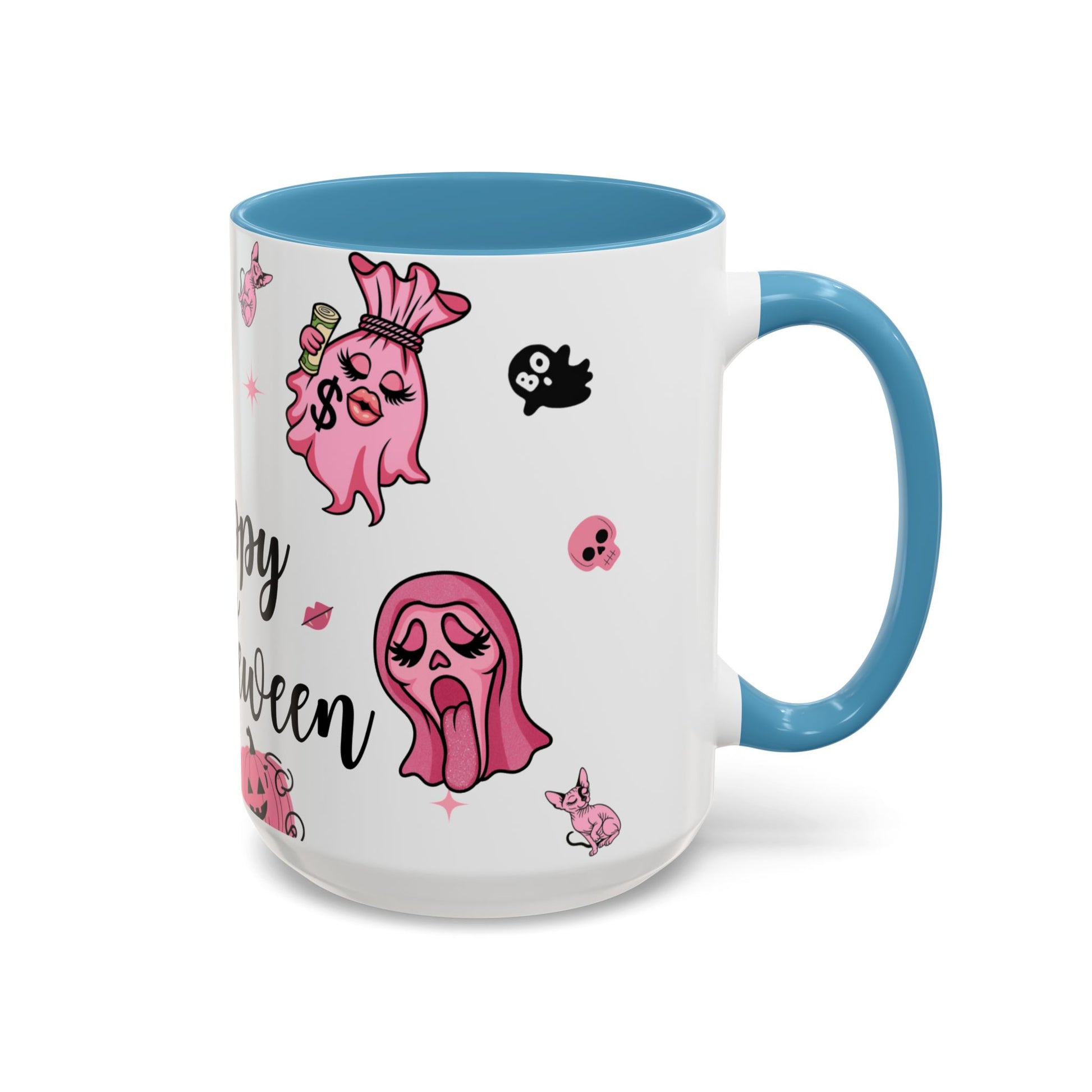This vibrant Accent Coffee Mug is perfect for those who love to enjoy their favorite beverages with a splash of personality. With its cheerful design featuring playful ghost motifs, it brings a fun, whimsical vibe to any coffee break. Ideal for cozy evenings at home or lively gatherings with friends, this mug adds joy to every sip. Whether you’re sharing laughs or enjoying a quiet moment, it enhances the atmosphere of comfort and creativity. Great for students, working professionals, or anyone who appreciates unique kitchenware, it's especially relevant for celebrations like Halloween or cozy autumn gatherings.