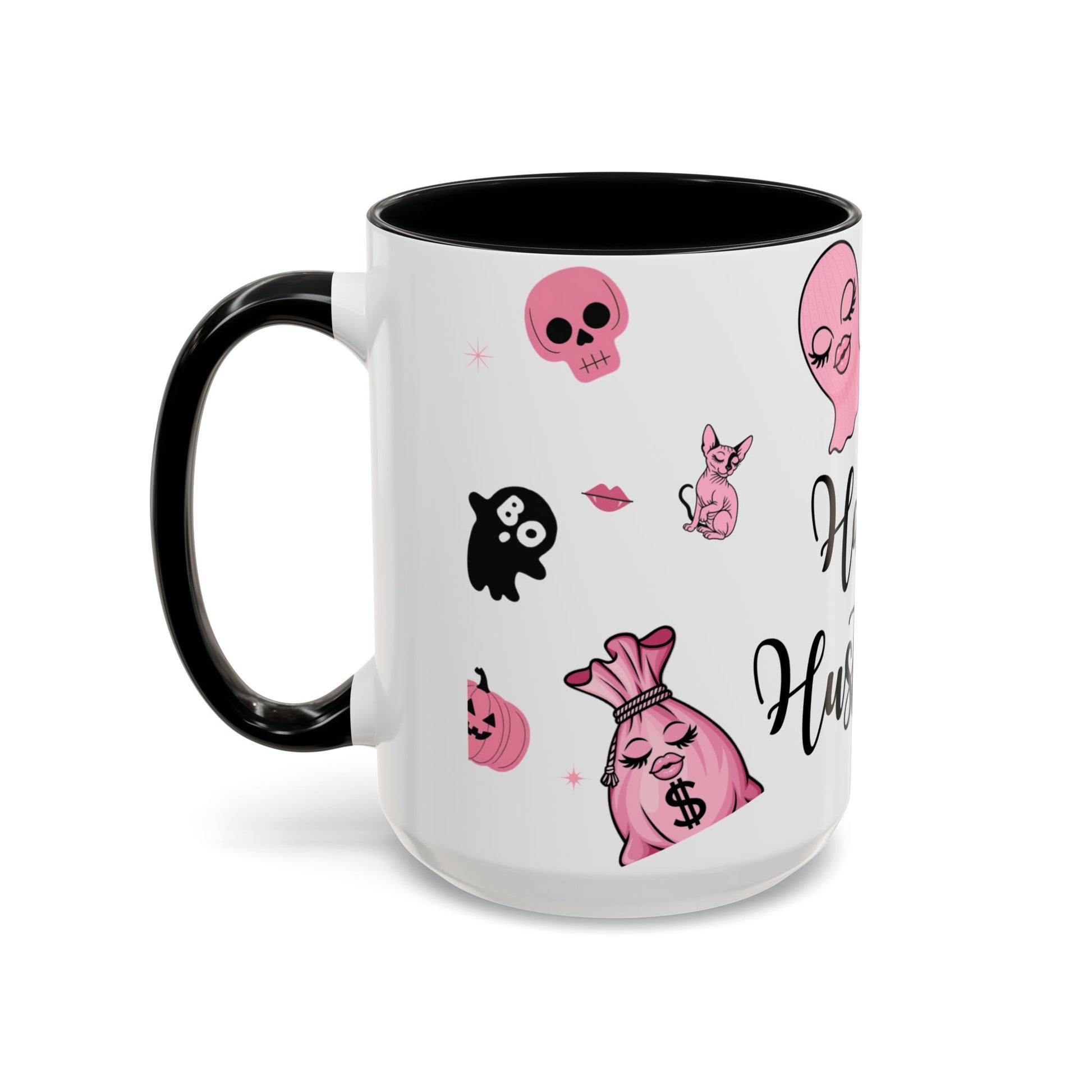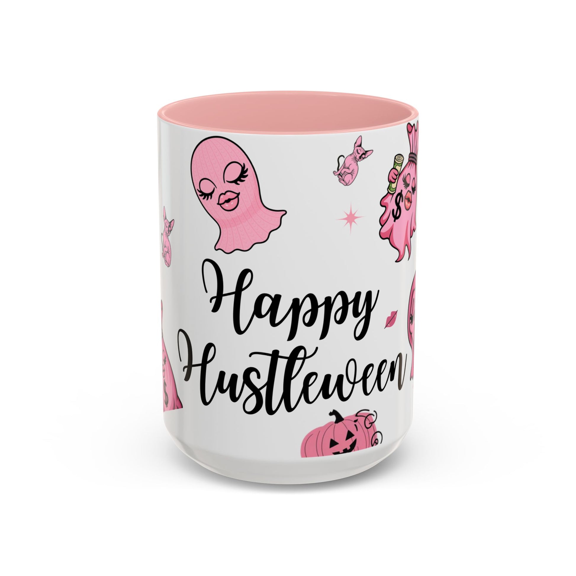 Halloween-Themed Accent Coffee Mug, Happy Hustle Mug, Ghost Mug, Pink Spooky Cup, Unique Gift for Halloween Lovers